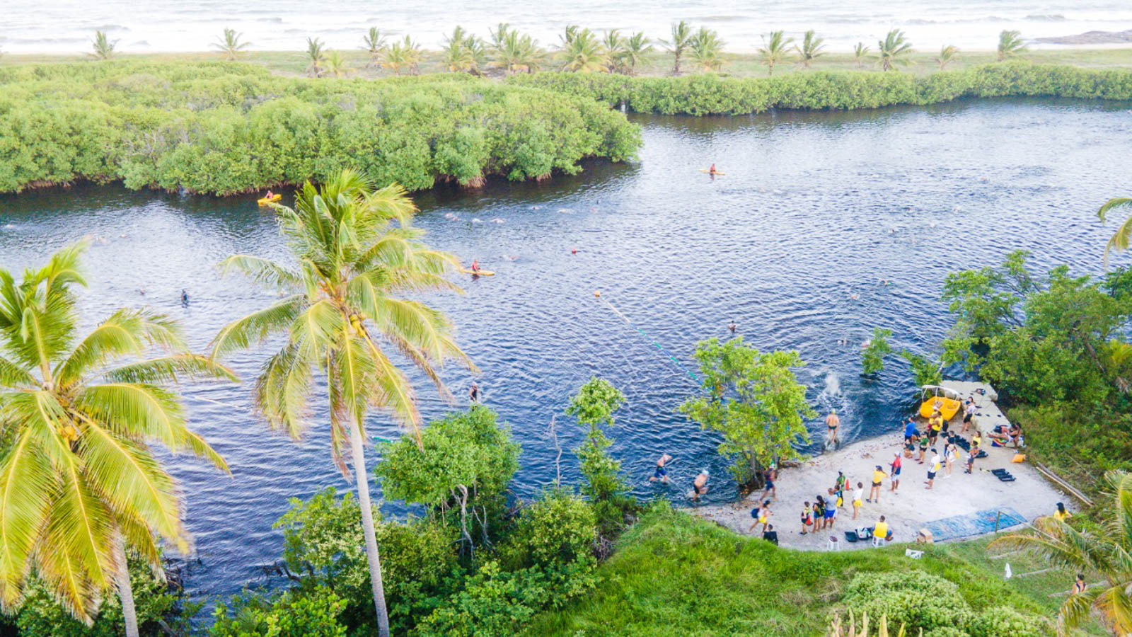 A primeira largada foi com os futuros atletas entre 6 a 9 anos, que nadaram em um rio de água doce e salgada (salobra), com profundidade máxima de 1,5m. Dentro do rio, foi montado 4 diferentes percursos, sinalizados com bóias e raias de natação. A natação foi única, reunindo diferentes características, pois era rasa como uma piscina, tinha o seu percurso protegido como uma lagoa e era abastecido pela água do mar.