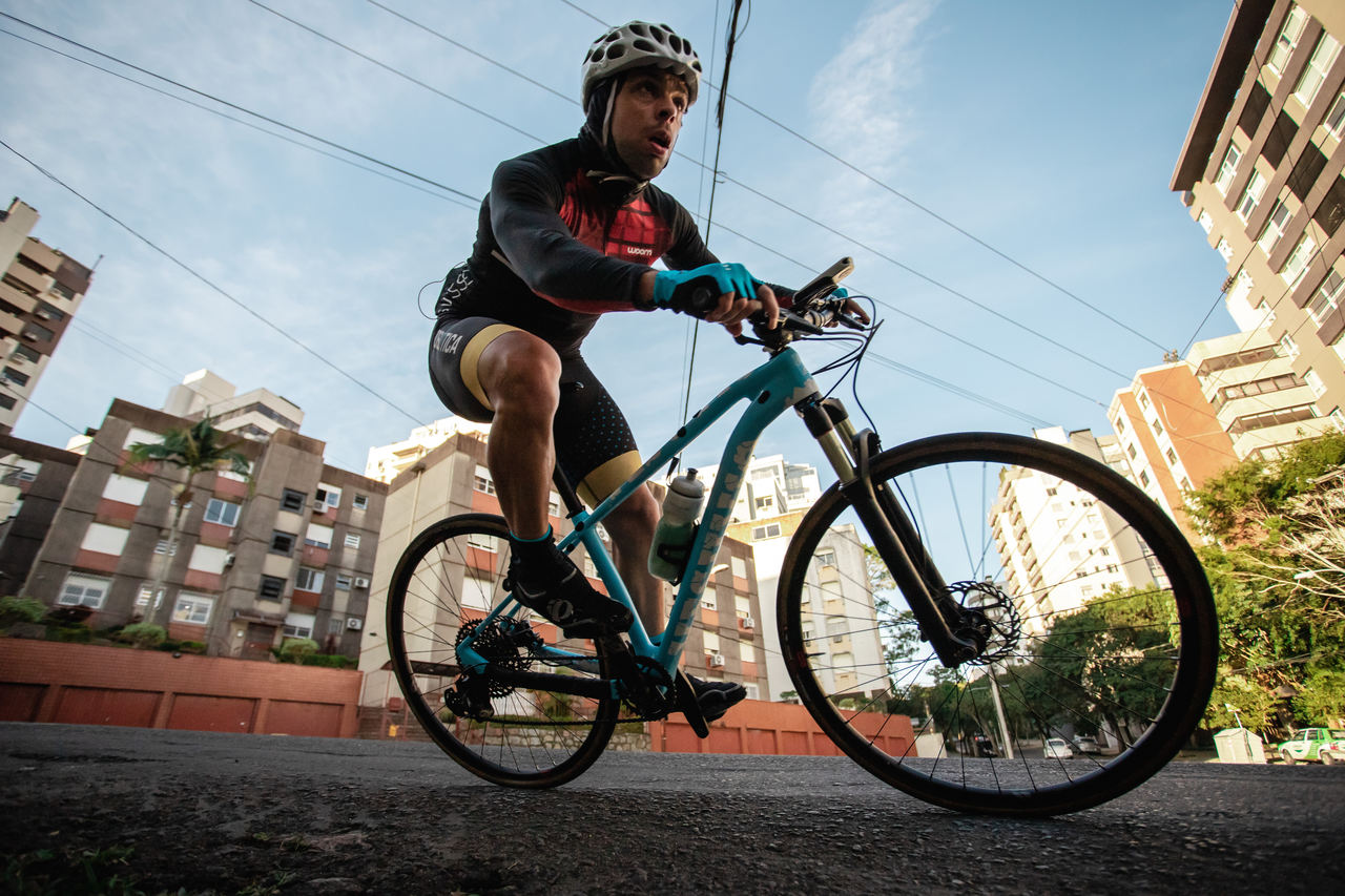 Cheguei no triathlon por influência de um amigo de infância e de vida toda, que, enquanto cursava Educação Física, foi ser Staff no IM Brasil em 2009. Voltou da prova alucinado, e logo me propôs o desafio: IM Brasil em 2012. Aquilo me chamou muito a atenção e eu fui pesquisar o que era Ironman, pois só conhecia o triathlon de forma genérica. Na época, eu viajava de bike, já tinha duas bikes Road, já amava pedalar e já era fascinado por esporte. Minha vida toda foi ligada ao esporte. Joguei futebol até os 17 anos, passando por todas as categorias de base do SC Internacional, era viciado em surf, skate, escalada… sempre tive facilidade para os esportes.