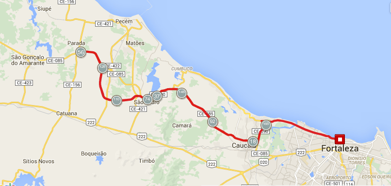 A corrida, por sua vez, será realizada em três voltas de 14,065 Km, dos quais 10 Km serão percorridos pela orla da belíssima praia de Iracema, um dos principais cartões postais de Fortaleza. Os postos de hidratação estarão localizados a cada 2 km. Diferentemente de 2014, o percurso não contará mais com o trecho em direção ao Espigão (Avenida Rui Barbosa).