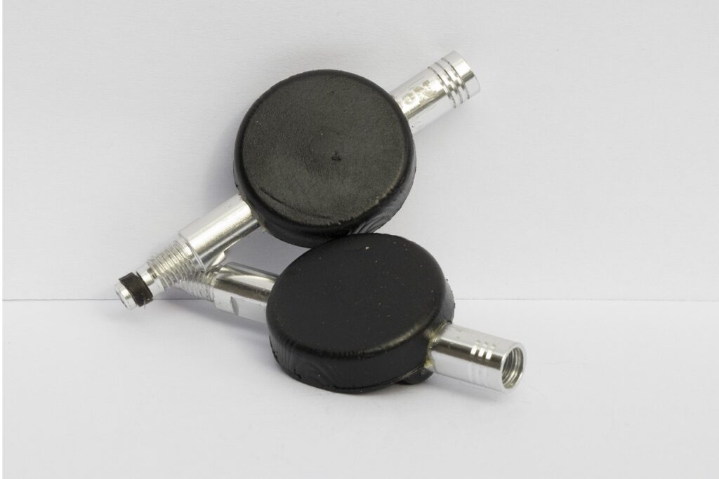 Para instalar, basta remover o núcleo da válvula de uma Presta existente, rosquear o sensor PSIcle na válvula no lugar do núcleo e rosquear o núcleo da válvula de volta na parte superior do sensor.