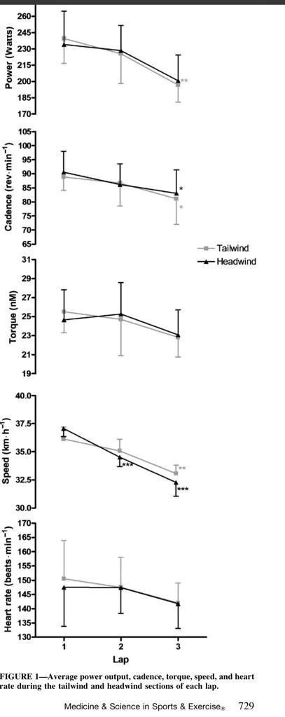 Abbiss, C. et al (2006), observou 10 triatletas no Ironman Western Austrália, que estiveram entre os 10% melhores tempos da prova (4). Verificou a potência, cadência e velocidade de cada um considerando as condições de vento a favor e contra na prova, durante as 3 voltas. Concluiram que a potência, cadência, torque líquido e velocidade no foram significativamente diferentes entre as seções de vento frontal e de cauda.