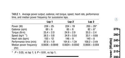Também descobriram que perto do final da sessão de ciclismo de baixa cadência, o estresse colocado nos atletas, medido pelo VO2, frequência cardíaca, frequência de ventilação e acúmulo de lactato não eram significativamente diferentes em comparação com a sessão de cadência escolhida livremente.