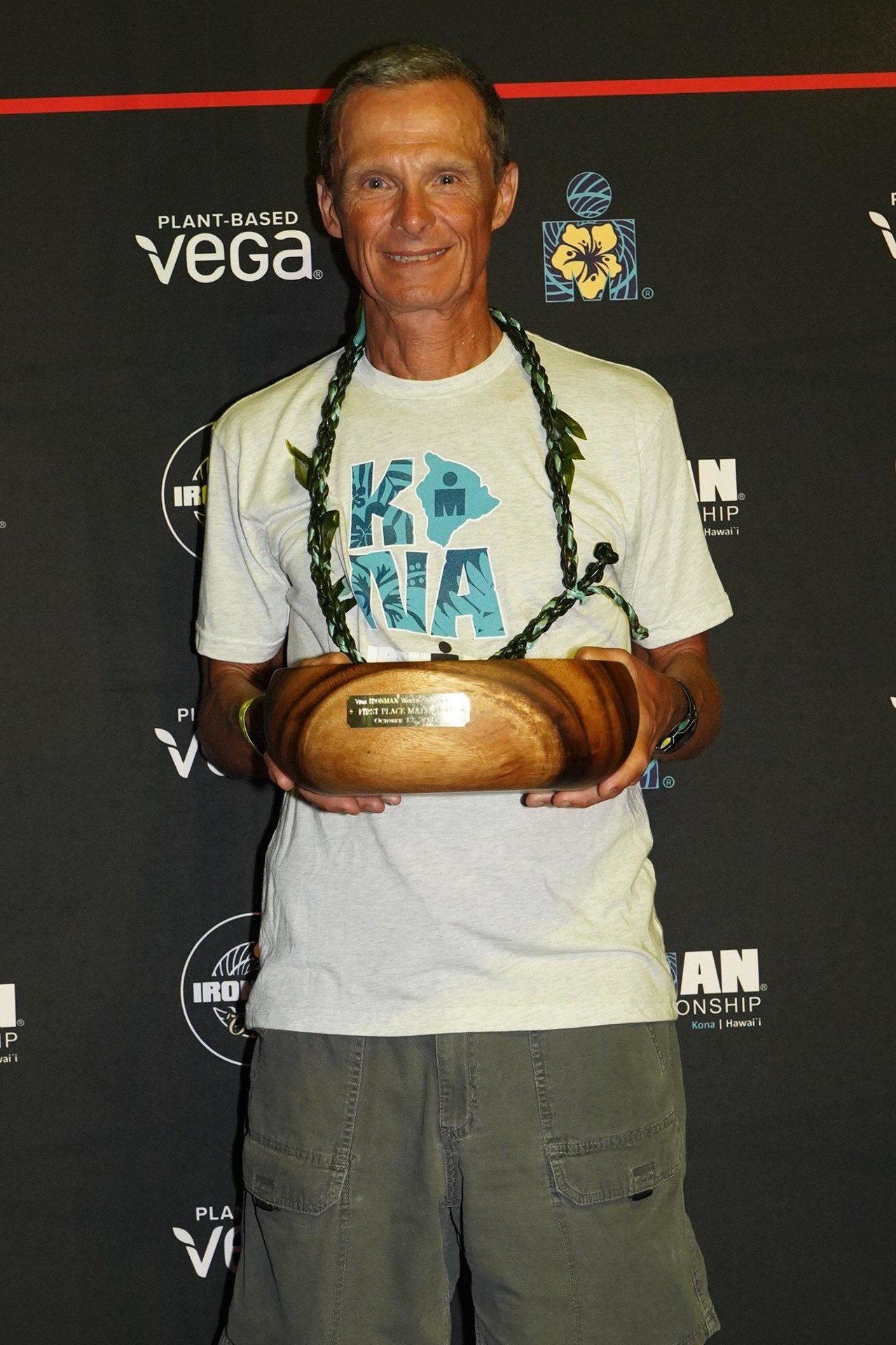 Azevedo com o tão esperado “Umeke”, destinado aos que conquistam o pódio em Kona. Foto: FinisherPix