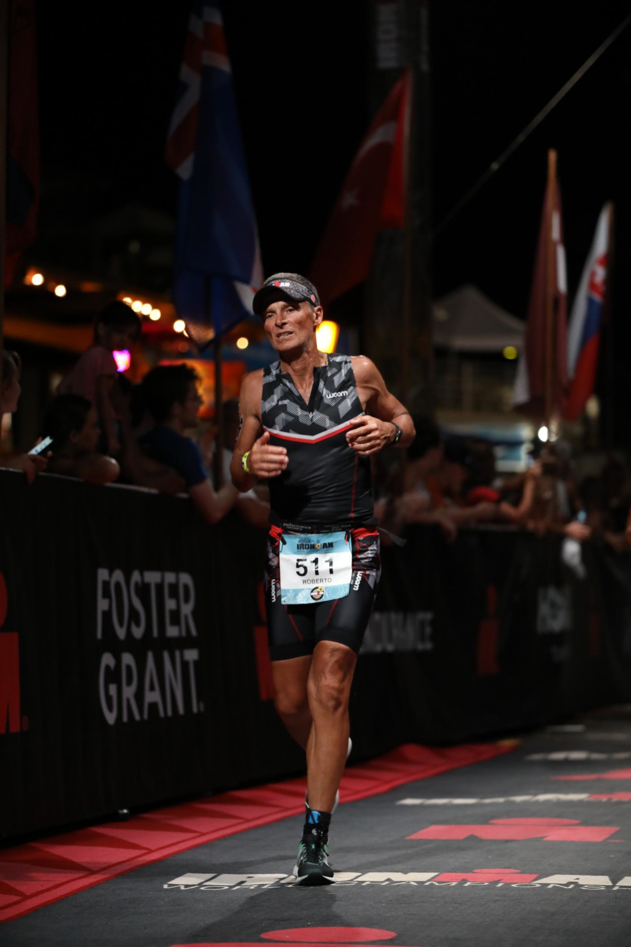 Ele chegou a Kona este ano com a ideia realística do que poderia fazer, examinando os novos adversários e concluindo que o pódio poderia ser possível. Foi também com a atitude mental de chegar em primeiro lugar. “Só de estar ali, naquela hora, com tudo o que aquilo significa, eu já me sentia realizado. Nadei e pedalei bem para os meus parâmetros. Fiquei feliz e aliviado de estar tendo uma mecânica de corrida razoável dada a minha lesão crônica de joelho. No km 11 recebi a informação da Fernanda Palma (meu anjo da guarda) de que estava a 19 minutos do segundo colocado e perguntei: ‘e do primeiro?’. Ela respondeu: ‘você é o primeiro!!!’ Depois de acreditar nisso, vi que tinha chances de ganhar! Fui tomado por uma emoção profunda: ‘puxa!! Como tudo na minha vida é tão bom!!’ No km 35, Fernanda me informou que a minha diferença para o segundo colocado tinha caído para 4 minutos. A partir daí, fiz o maior esforço físico e mental da minha vida. Disse para mim mesmo: ‘você não existe, agora é ir, ir e ir, nada mais!! Terminei 64 segundos à frente do segundo colocado”, relembra Roberto.