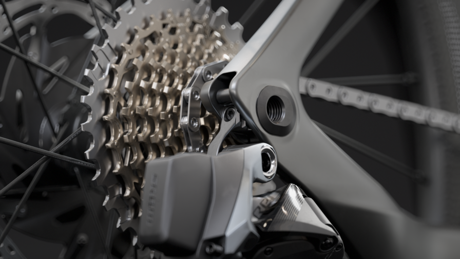Todo o quadro parece esculpido para a velocidade, com formas radicais e saliências em forma de aba na parte inferior das pernas do garfo para suavizar o fluxo de ar. Na verdade, as próprias pernas são largas em comparação com o que estamos acostumados a ver em bicicletas de estrada.